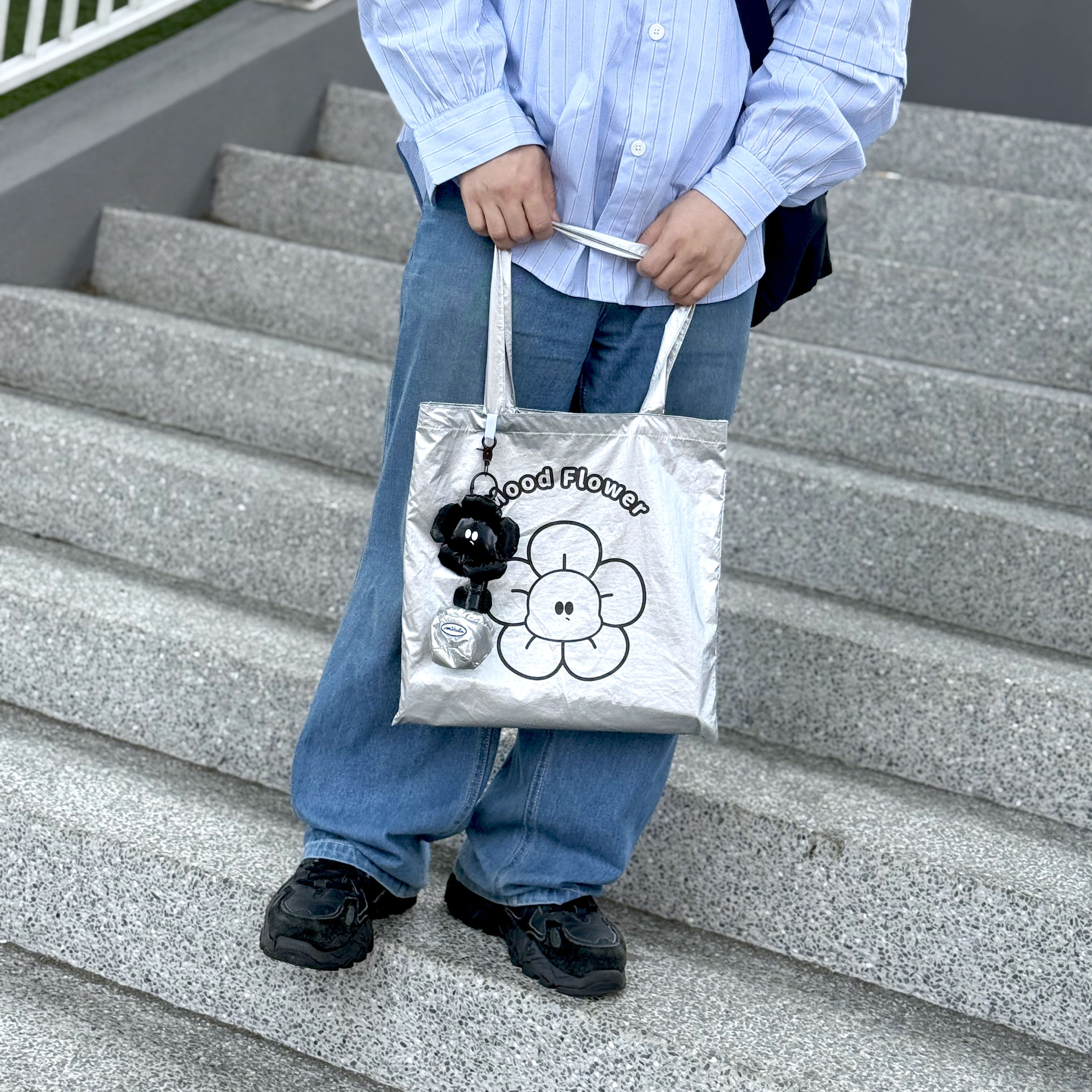【New】黑銀小花盆栽收納環保袋